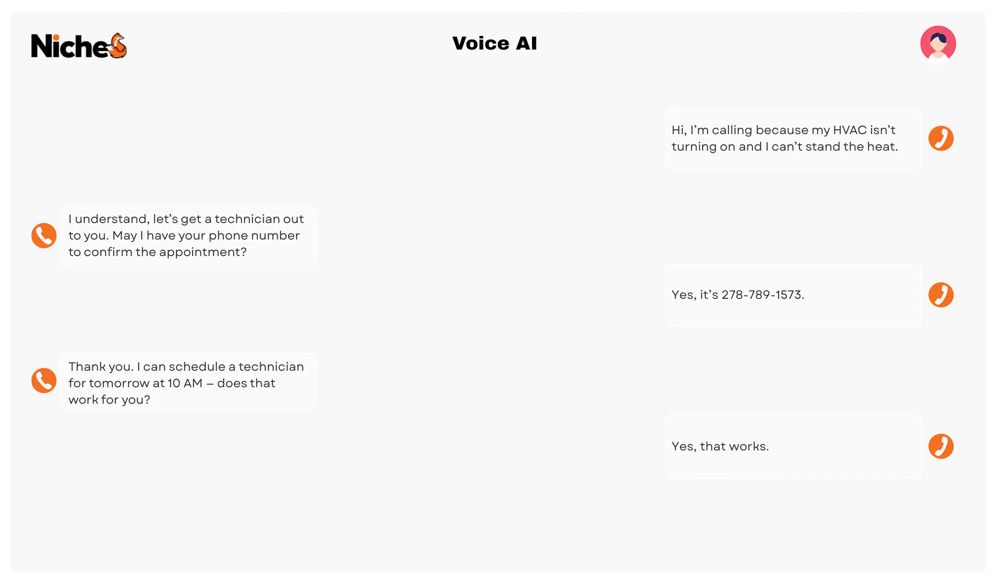 Transform every phone call into a conversion opportunity with our advanced Voice AI that handles customer inquiries, books appointments, and follows up automatically.